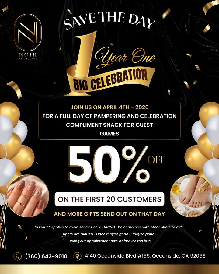 Welcome you to Noir Nail Lounge, we are pleased to offer a full service Salon for our valued customers. We always assure that the salon is totally clean and the tools are sanitized clearly for each use. You are freely to enjoy the relax moments with luxurious and elegant space, escaping from all the life’s pressure and stress to make the most of wonderful time.